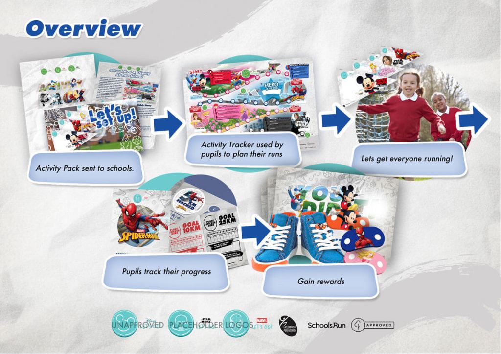 Providing creative ideation and design solution for the SchoolsRun project – a partnership campaign between Disney, Park Run and London Youth Games. I lead the creative and design work from ideation to delivery. Enabling schools nationwide the access to resources with inspirational characters to engage young kids to get active and running.