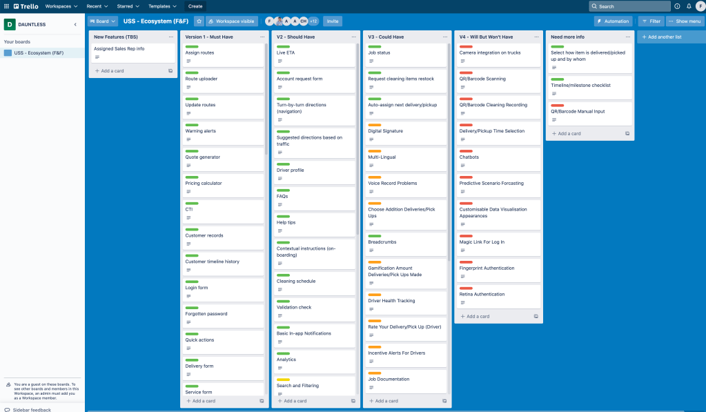 Working alongside another UX designer at this stage we mapped out all of the features that were needed to create the application. Highlighting high and low priority features for an MVP.