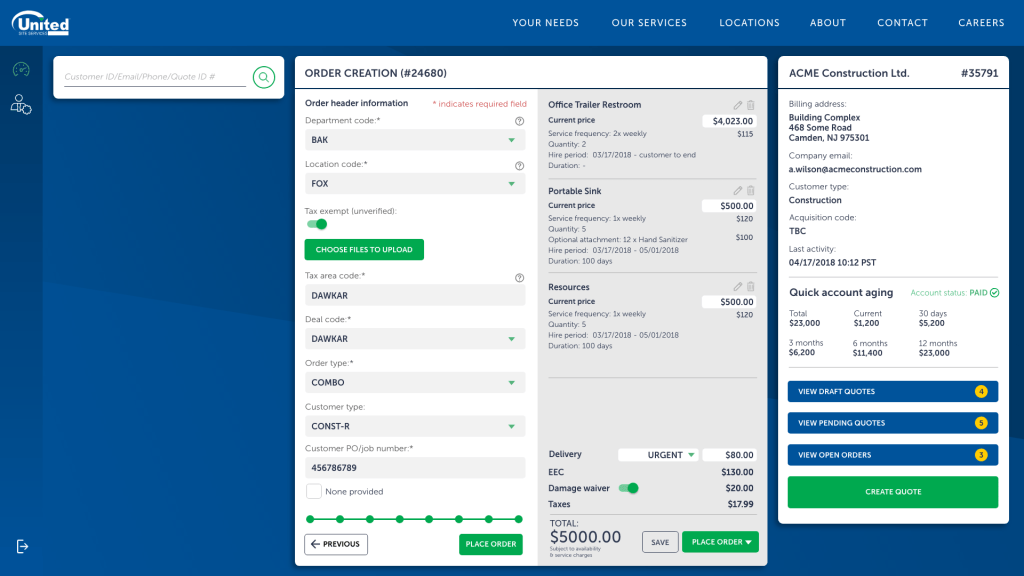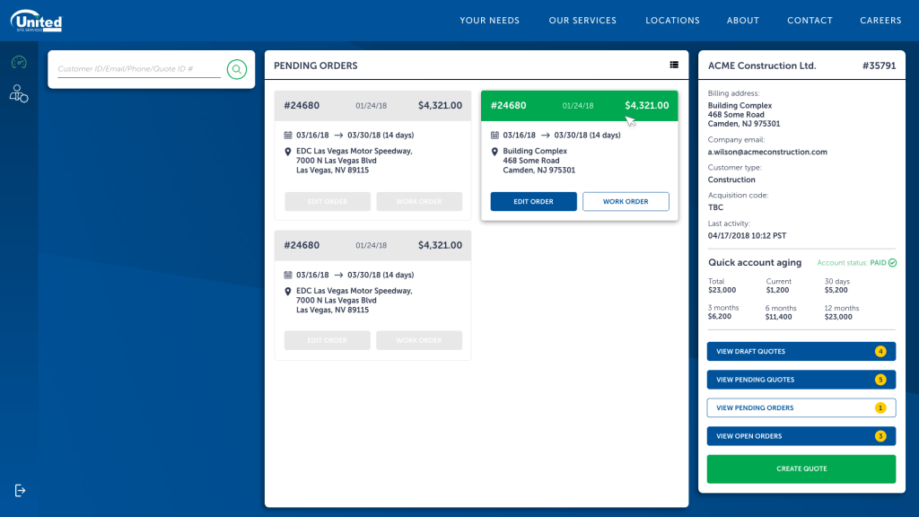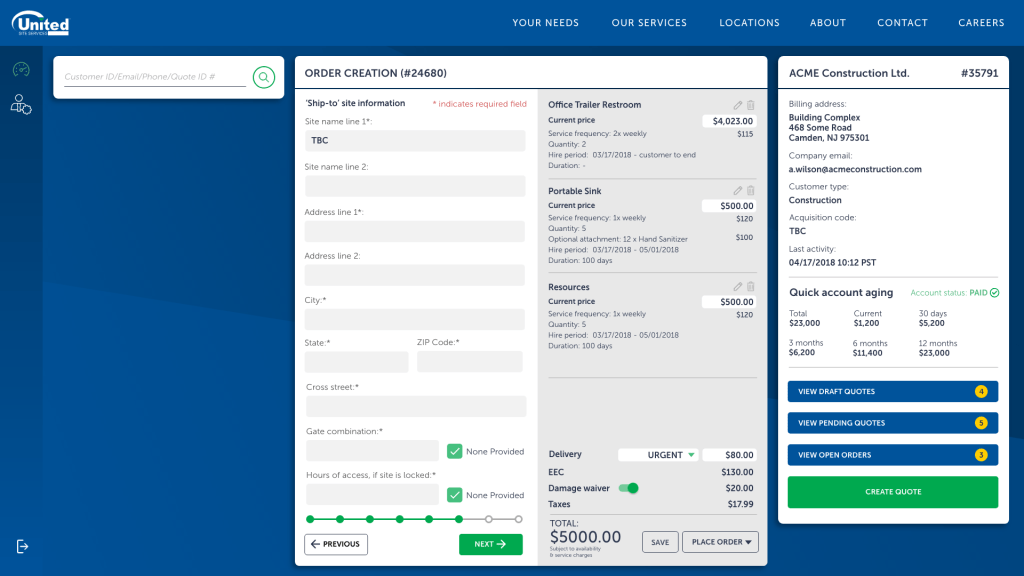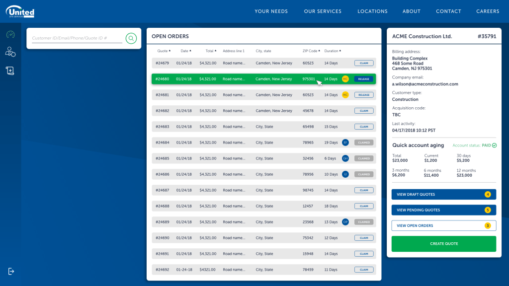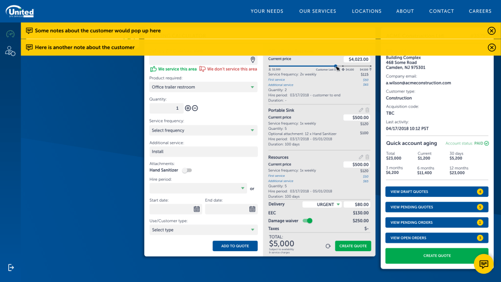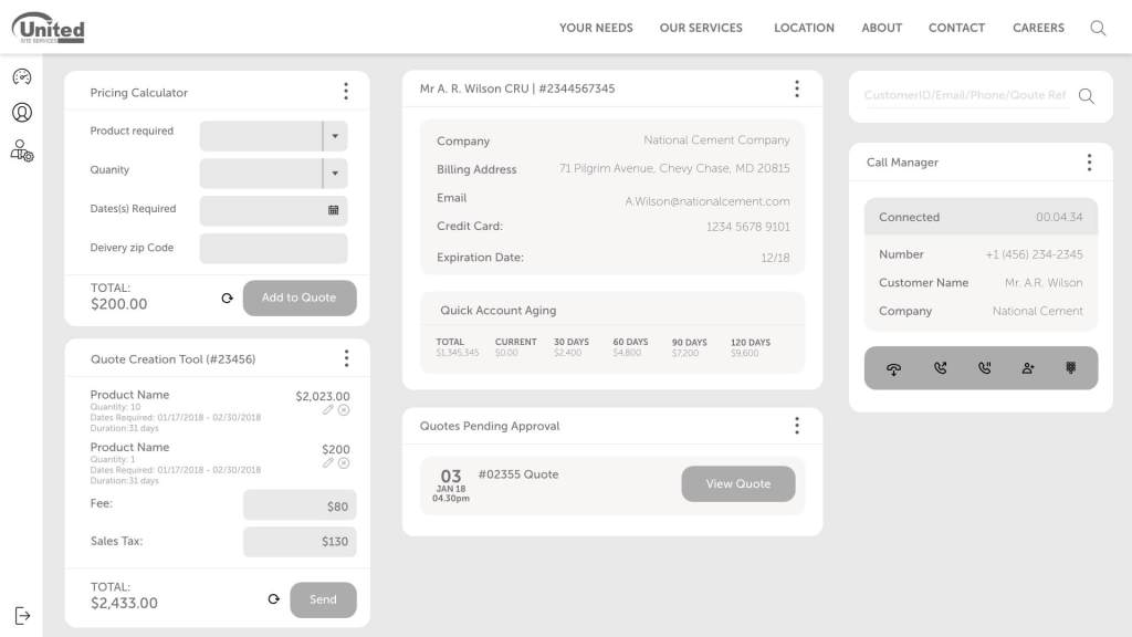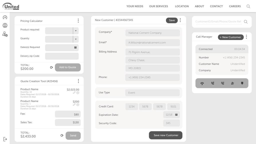 USS were a very manual company, a lot of the consultations were done manually on physical forms, there wasn’t a full integrated system managing and governing their clients, a lot of it was an on-call relationship client has with representatives of. Regrettably, pricing was often made up depending on the relationships and generally who picked up the phone. There wasn’t a system across the whole of the US to govern it all. There were often employees hired solely to transfer physical documents and scan and fill them into a system. It was a very broken way of working.