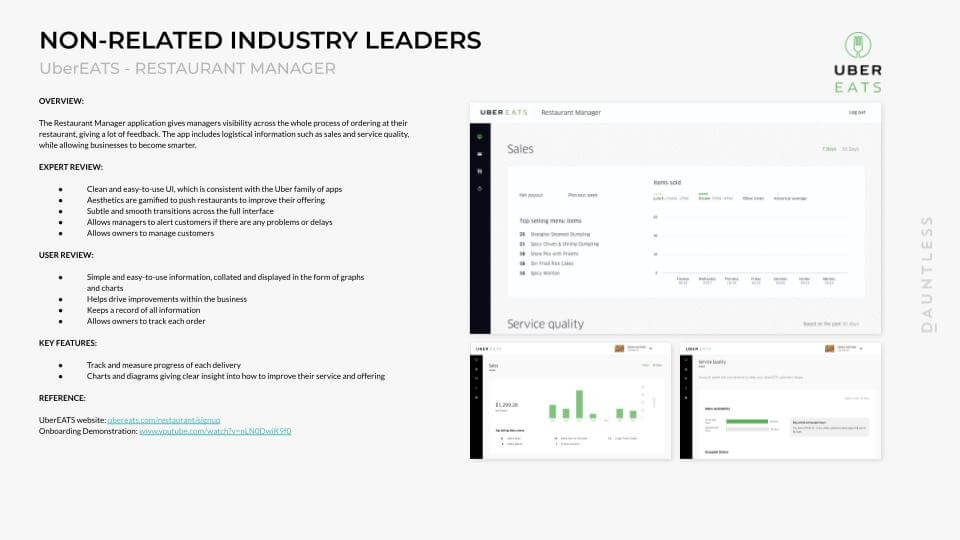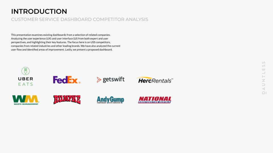 The investigation was conducted on service dashboards of direct competitors. As this was for an internal system it was very difficult to dig deep but we uncovered a wide set of insights.