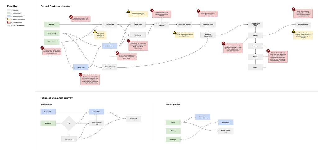 In collaboration with a technical director – I worked up the journey of how a Quote goes through to Order. We uncovered numerous issues in their approach and systems used.