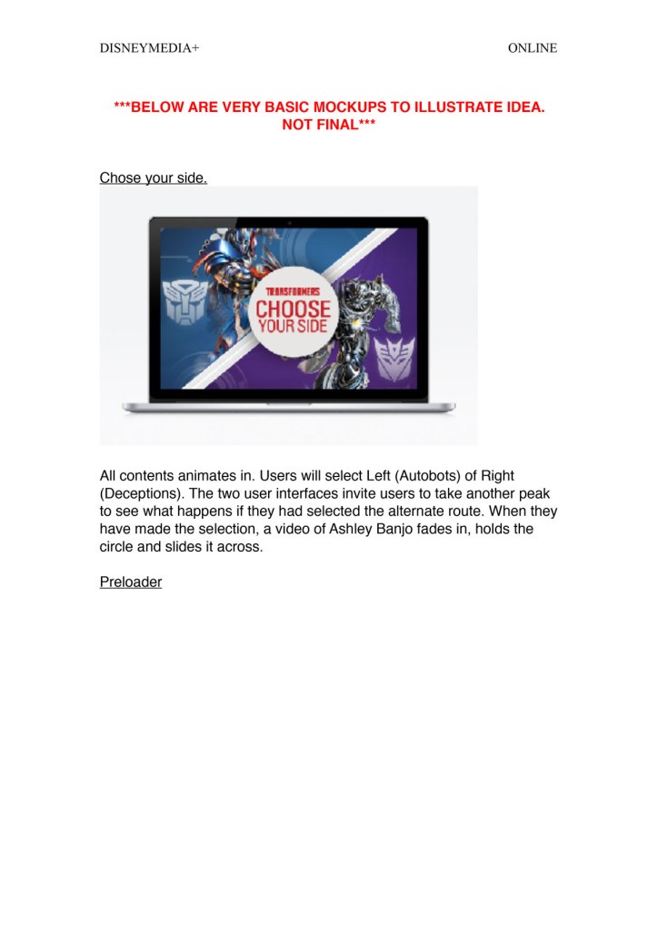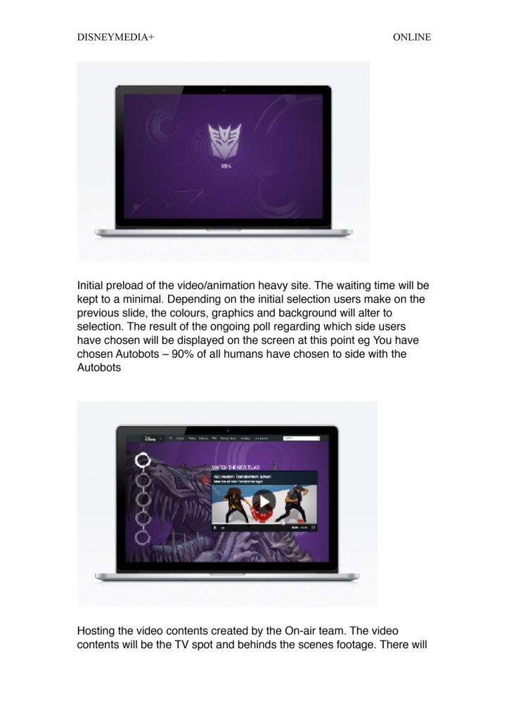 I lead the direction of the background video produced working with an external agency to create the background 3D Grimlock video. I set up exactly what was needed at each interval. I worked with a web developer to make sure the ‘sections’ align up with key areas of the product on the background video.