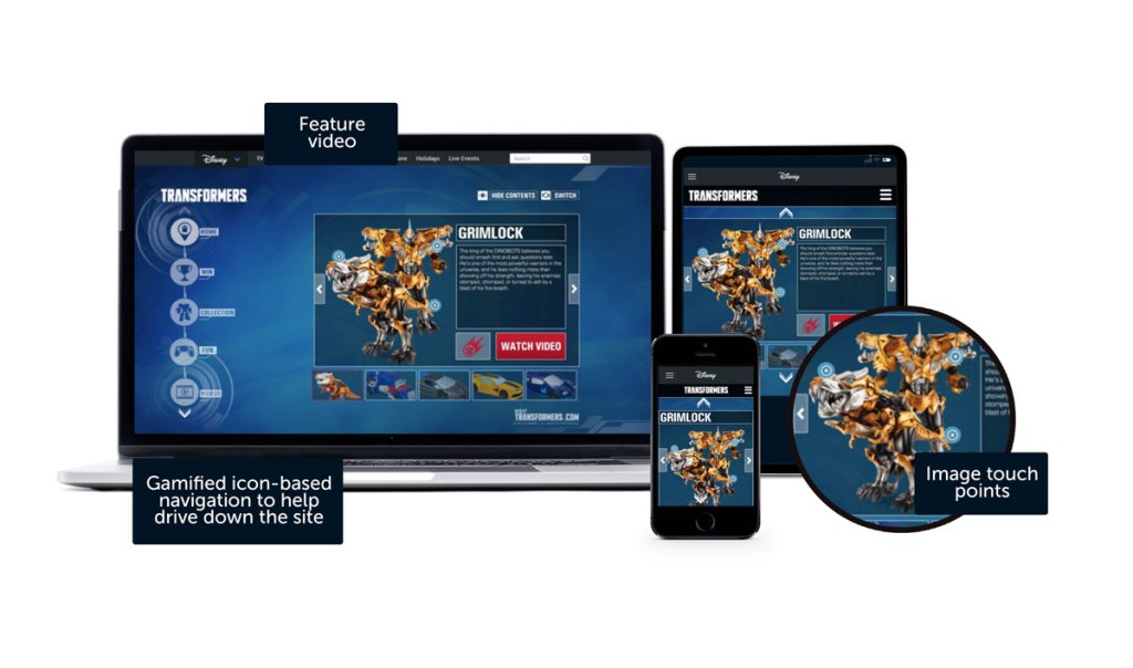 To celebrate the release of the new Transformers Grimlock Toy. Hasbro teamed up with Disney to create a promotional campaign across TV, and Digital website and media.