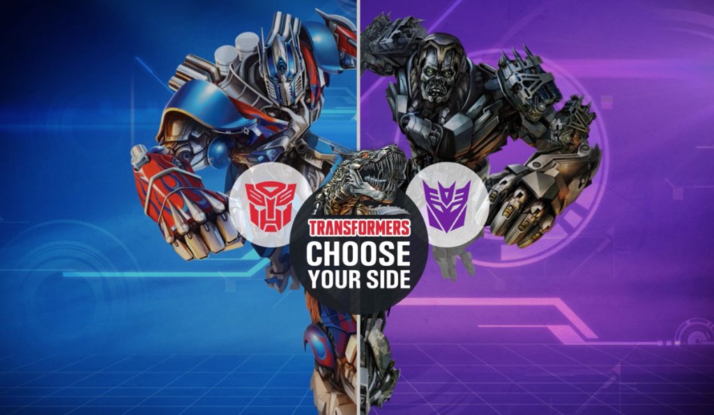 To play with this concept we invited users to choose their side; when users land on the site, they are greeted with an alternate colour scheme they have chosen representing Autobots and Decepticons.