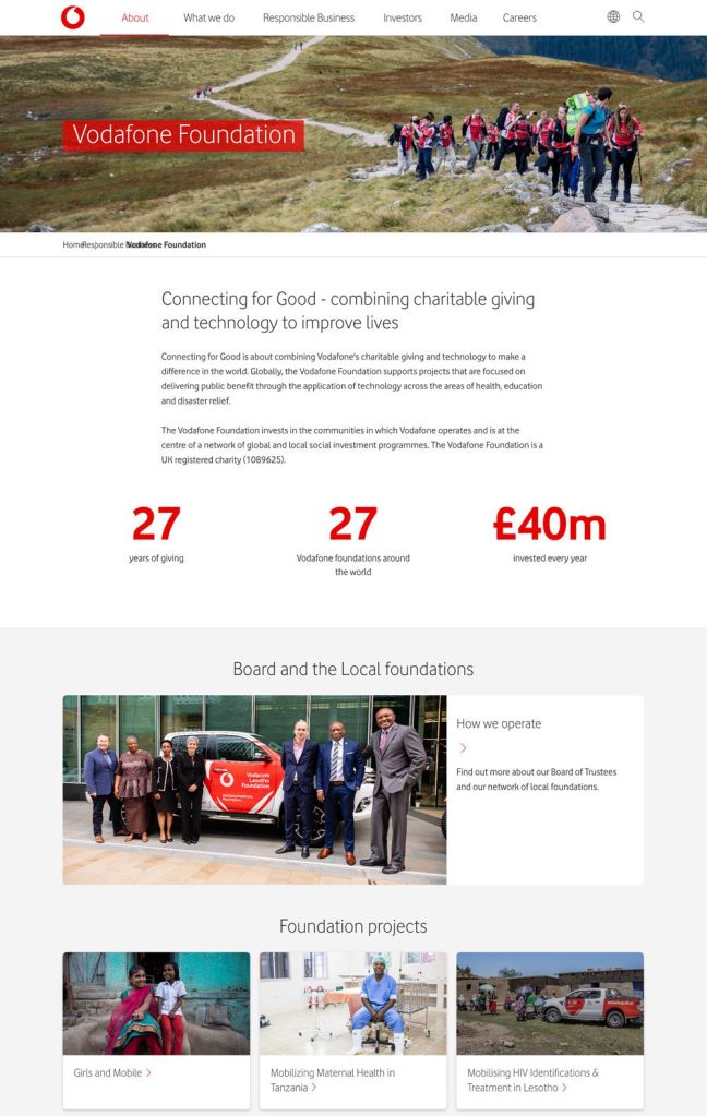 We were introduced to Vodafone Foundation to really help push them in a direction that shows the relationship of Vodafone Foundation and Vodafone but also has its own identity.