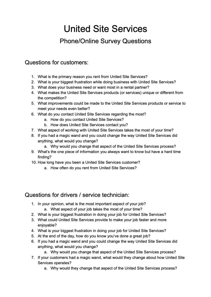 Below are set of questions to understand the users at USS that I compiled.